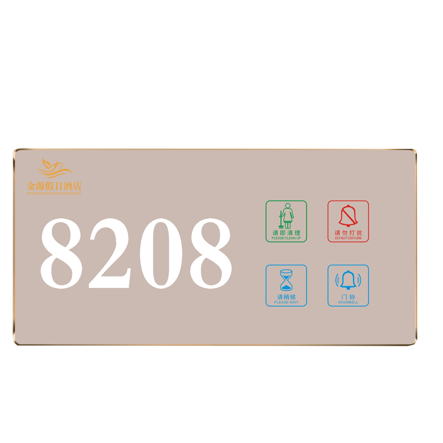2、客人按下房間內(nèi)的"請(qǐng)勿打擾”開(kāi)關(guān),液晶屏的"請(qǐng)勿打擾”圖案背光亮起,門(mén)外顯示屏中提示請(qǐng)不要打擾,此時(shí)門(mén)鈴按鍵不起作用。