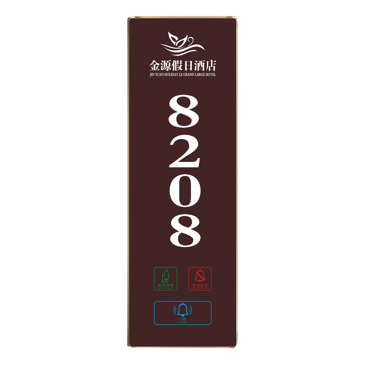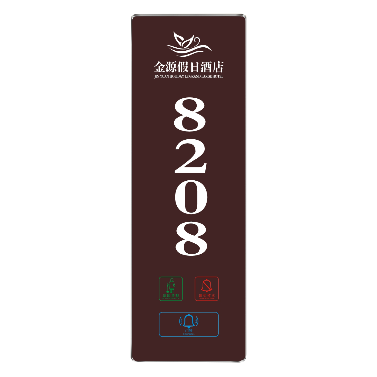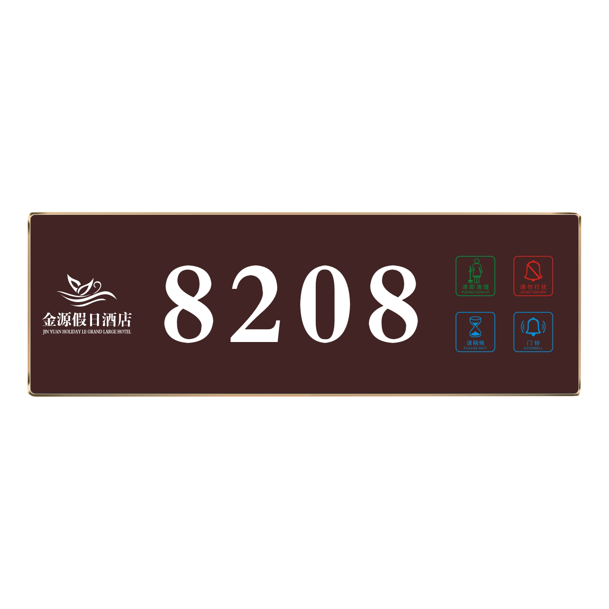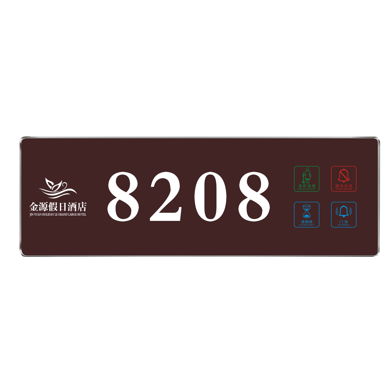 2、客人按下房間內(nèi)的"請勿打擾”開關(guān),液晶屏的"請勿打擾”圖案背光亮起,門外顯示屏中提示請不要打擾,此時門鈴按鍵不起作用。