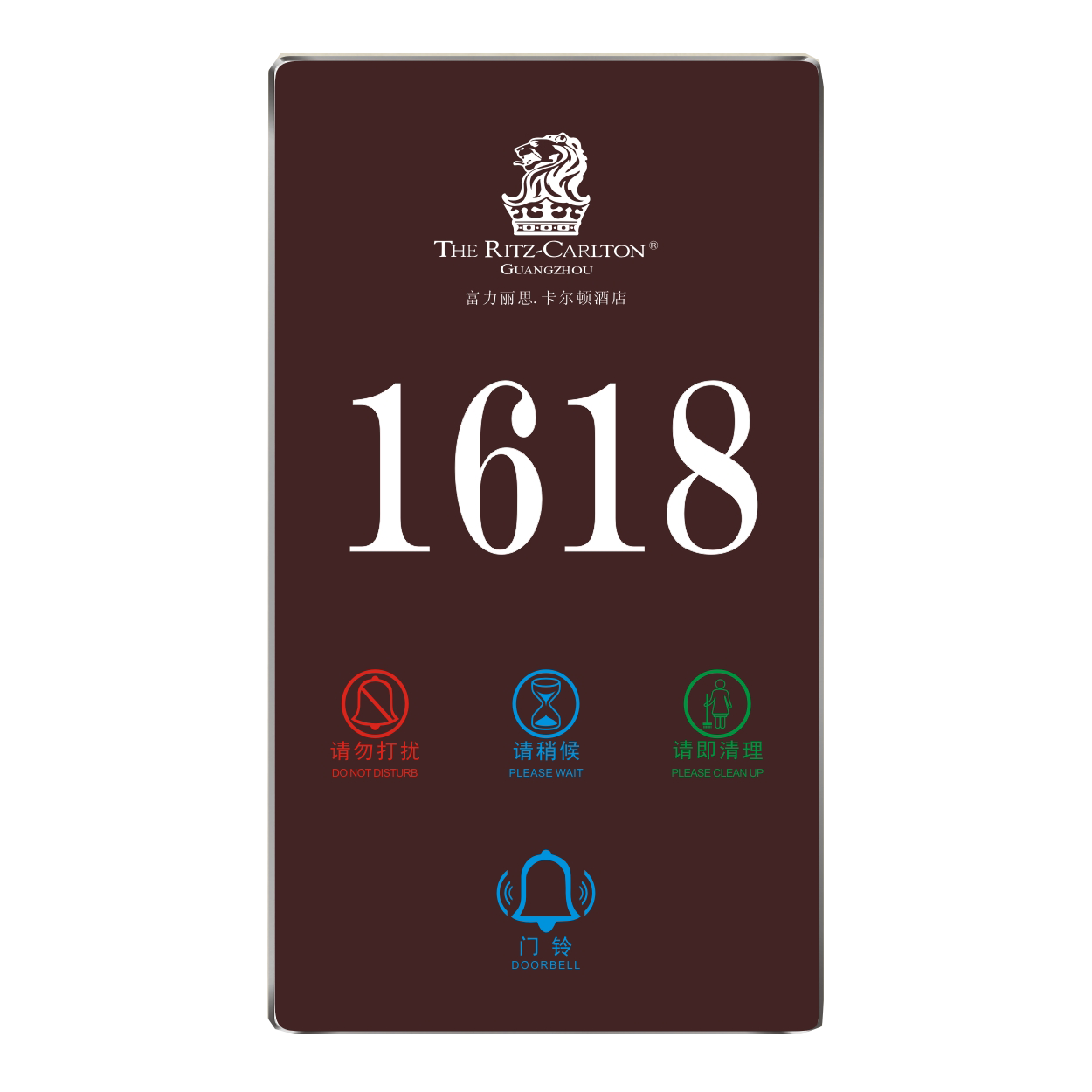 2、客人按下房間內(nèi)的"請(qǐng)勿打擾”開關(guān),液晶屏的"請(qǐng)勿打擾”圖案背光亮起,門外顯示屏中提示請(qǐng)不要打擾,此時(shí)門鈴按鍵不起作用。