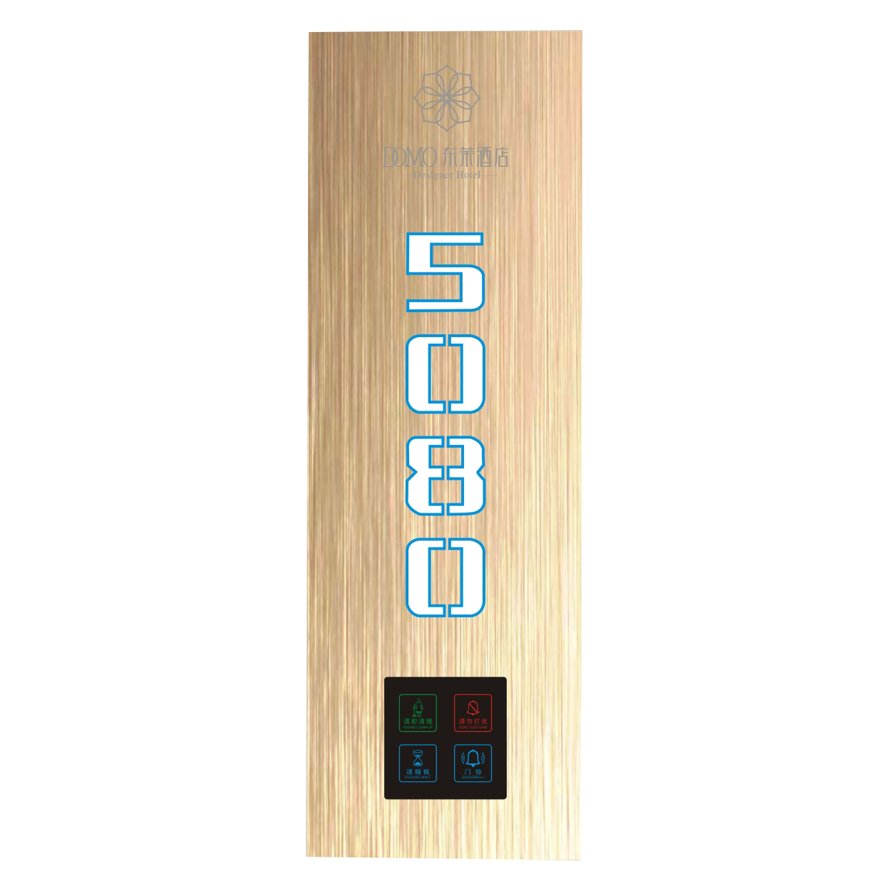 2、客人按下房間內的"請勿打擾”開關,液晶屏的"請勿打擾”圖案背光亮起,門外顯示屏中提示請不要打擾,此時門鈴按鍵不起作用。